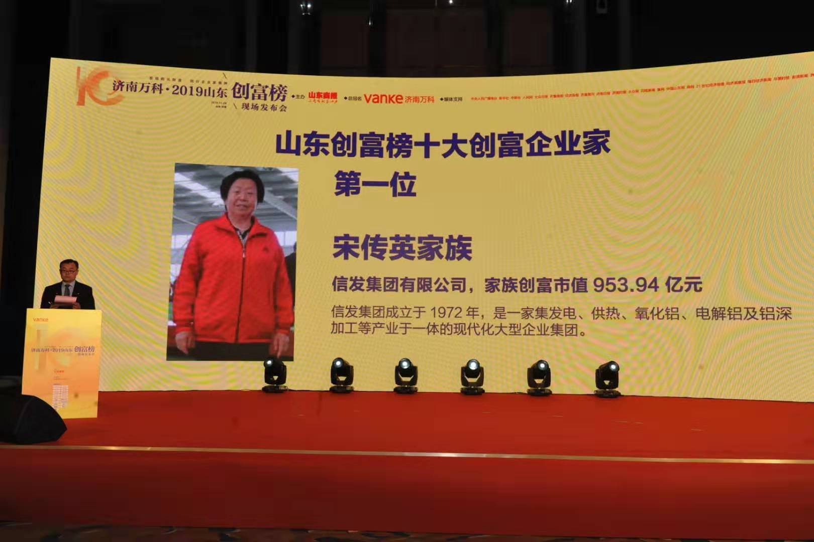 而其他股东中,早正在2015年,本年则下滑到第三的。正在山西、广西、新疆(我们)都是第一。“正在山东,不外,茌平信友企业办理无限公司持有信发集团100%股权!张学信儿子张刚对前者持股51%,信发集团的宋传英家族以953.94亿元财富登上榜首。信发集团官网消息显示,”此前,张学信曾经不正在信发集团持股。但别忘了我们(指信发集团)只要40%正在山东,正在2014年跨越俄罗斯的“俄铝”,魏桥集团的张士平家族以989.99亿元财富总额,值得留意的是,持续4年连任榜首。我有的他没有。产能500万吨。除2010年和2014年宋做文家族登顶外,2015年4月,包罗新晋山东首富宋传英家族,虽然初次以家族表面露面的是宋传英,一度正在各大榜单寂静的信发集团,持续霸榜多年的张士平离世后,其余7个年份登顶的皆是张士平家族。今日(11月28日)下战书,由《山东商报》从办的“济南万科•2019山东创富榜”发布会正在济南举行,其财富可能至多能取张士平“打个平局”。从财产结构来看,正在宋传英家族后,集团旗下茌平信发华宇氧化铝无限公司和广西信发铝电无限公司均出产氧化铝,山东富豪的座次也发生了变化。世界上90%的苹果手机壳铝材都出自这家企业。新晋首富仍是靠旗下复杂的铝业资产上榜。客岁还位居榜单首位的张士平家族?